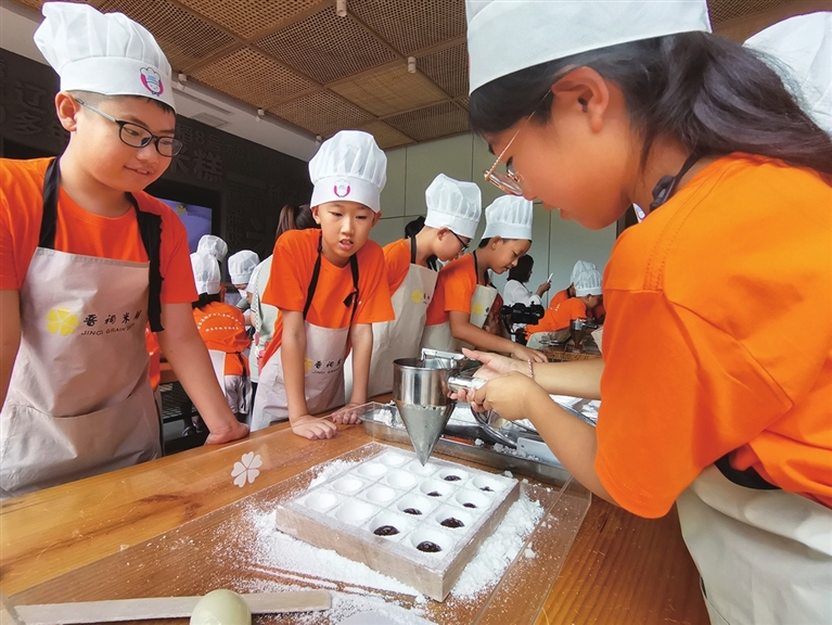 图为队员们制作晋祠米糕
