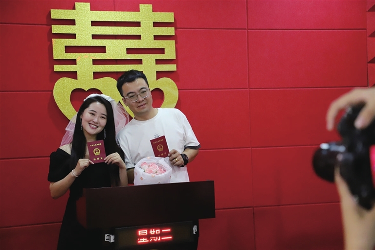 8月22日,农历七月初七,是我国传统节日“乞巧节”,不少情侣选择在这天登记结婚。当日,万柏林区婚姻登记处有145对新人领取了结婚证。张昊宇 摄