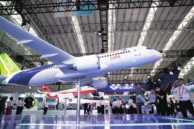 8月29日,参会者在中国商飞公司展厅拍摄C919飞机模型。当日,以“合作共享新机遇 创新激发新动能”为主题的第六届中国国际新材料产业博览会在哈尔滨启幕。新华社记者 张 涛 摄