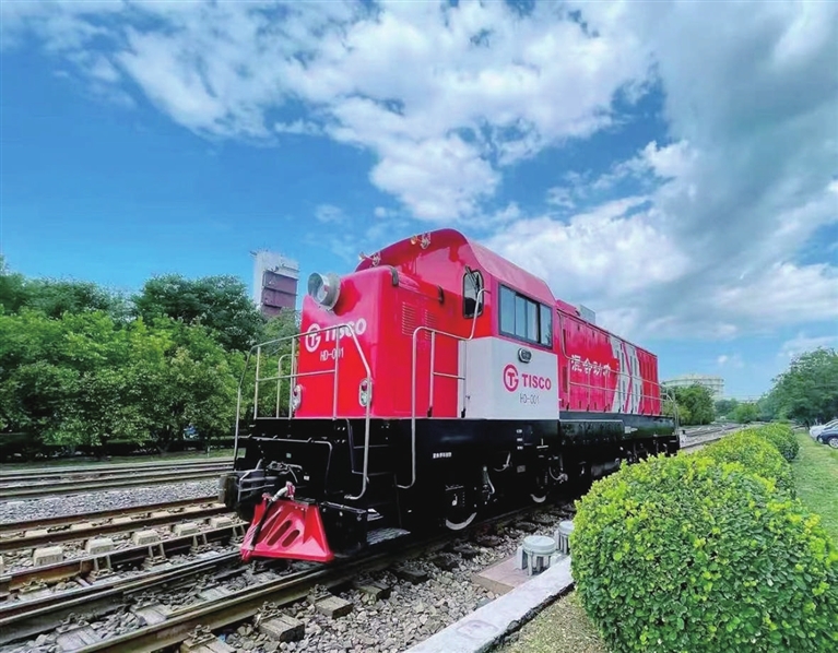 在太钢生产厂区内,一眼就能看到5台新改装的混合动力机车。其车身红白黑相间、外形时尚酷炫,平均台日消耗柴油102.68公斤,由太钢物流部联合中车资阳公司共同改造完成。改造车保持原机车主要外形结构尺寸不变,新配置大容量锂电池及柴油发电机组和牵引传动系统。实施翻新改造后,车辆从功能到颜值都焕然一新,有效降低了运营成本。同时具有故障率小、噪声低、效率高等优点,乘务员的驾乘环境也得到了极大改善。太钢相关人士介绍,传统老旧机车运用混合动力技术改造后,更经济、更节能、更环保,可助力打造节能环保、生态集约的绿色低碳物流体系。
