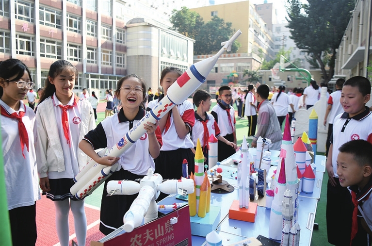 9月4日,迎泽街小学举行“科技点燃梦想 创新成就未来”环保科技节。活动展出了同学们暑期制作的环保手工作品,鼓励学生用知识武装头脑,点亮科技梦想。米国伟 摄