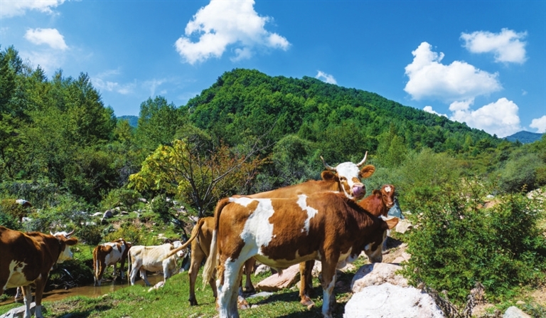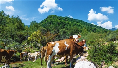 初秋时节,岔口乡寨底村。一股清泉由山而下,沿“河”牛儿忙着吃草,牛犊水畔撒欢……放眼,二龙山满目苍翠,山花恣意。清风吹过,草香袭来,令人心旷神怡。