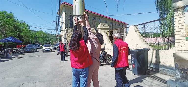 同时,该乡各村(居)陆续开展集中清扫活动。梭峪社区新时代文明实践站在“清理小广告、美化环境”志愿服务活动中,志愿者手持铲刀、喷壶和抹布等工具,对辖区沿街墙面、电线杆、树杆等处乱张贴的小广告进行了地毯式清理。李家沟村新时代文明实践站组织村“两委”成员、党员及志愿者,开展了“共建清洁家园”活动,对马兰滩居民安置区的各处环境卫生进行逐一检查、逐项清洁,治理了小区楼道乱堆乱放,清理了卫生死角,扫除了绿化带果皮、纸屑等垃圾。李家沟村党员志愿者老邢说:“干净整洁的环境,让我们获得感、幸福感油然而生。”