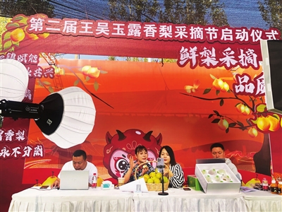 采摘节现场,还依托小店区“乡村e镇”搭建了户外直播间,仅开播半个多小时,直播间就涌入2000余人观看,成交1000余单玉露香梨,提高了王吴玉露香梨的影响力。