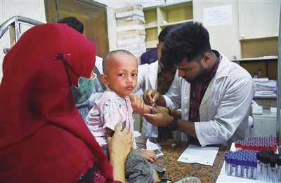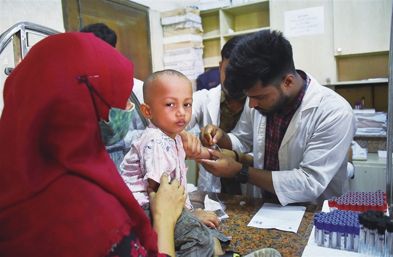 9月18日,一名儿童在孟加拉国达卡一家医院接受采血检测。孟加拉国卫生服务总局16日发布数据显示,截至当日,该国今年以来已累计报告登革热病例164562例,死亡病例804例,其中9月死亡病例211例。世界卫生组织称,这是该国有记录以来最严重的登革热疫情。