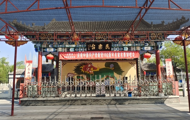 饮马河公园,位于府西街金融大厦东北侧。里面有个民乐台。这片小小拱桥、古井、廊桥、亭台围在湖心的舞台,算上起初在饮马河北门西侧的戏曲活动,已经持续了19年。这里每周六上午定期举办活动,遇到节假日还会加场,春秋时分若天气适宜,每周三也有。活动主角是以晋剧老艺术家和票友们。他们举办过七届“宏艺杯”戏迷票友演出大赛, 坚持不懈为民惠民精彩演出,在文化和旅游部等主办的“第二届全国特色文化广场”评选中,饮马河公园民乐台荣膺“全国特色文化广场”等殊荣,一时慕名观摩者络绎不绝。