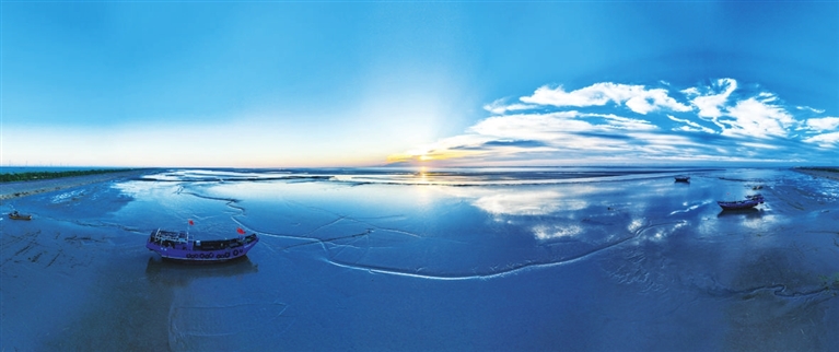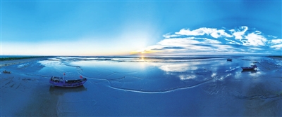 盐城东台条子泥湿地日出时分景色(9月1日摄,无人机照片)。盐城黄海湿地于2019年7月作为中国黄(渤)海候鸟栖息地(第一期)成功列入世界遗产名录,成为我国第一处滨海湿地类型世界遗产。这里是全球9条鸟类迁徙通道之一“东亚-澳大利西亚迁飞路线”的重要补给站,每年数百万只候鸟在盐城停歇、繁殖或越冬。