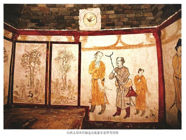 在太原市博物馆“锦绣太原历史文化展”的展厅中,陈列着一组唐代壁画——唐赫连山墓壁画。赫连山墓见证了初唐时期“太原元从”(指晋阳起兵即跟随李渊父子者)的金戈铁马,展示了中古时期太原先民的市井生活;壁画中部分深目高鼻的人物形象,也为我们绘制了一幅大唐东西方文化交流的历史画卷……