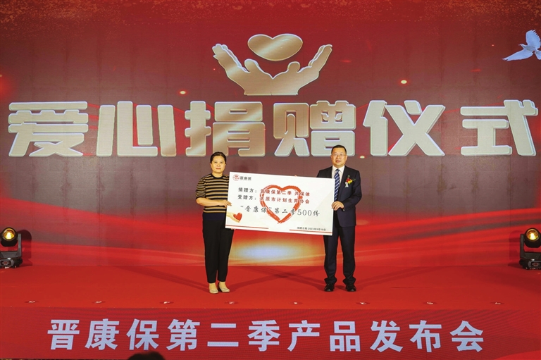 发布会现场,国寿财险山西省分公司党委书记、总经理吴奕琪代表“晋康保”共保体向太原市计划生育协会捐赠了“晋康保”产品,共计500份,旨在帮助困难家庭减轻就医负担、增进民生福祉,共同筑起抵御疾病的坚实屏障。(梁 敏)