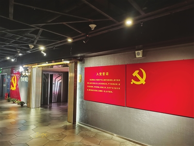 走入太原奥斯卡国际影城,4号厅墙上,鲜明的党徽令人肃然起敬,“永远跟党走”几个大字赫然在目。影厅另一侧的墙上,印有鲜艳的党旗和入党誓词。影厅周边,还有“刘胡兰精神”“太行精神”等宣传版面。走入影厅,墙上挂着“学党史 知党情 颂党恩 跟党走”一排大字。整个影厅给人以满满正能量。