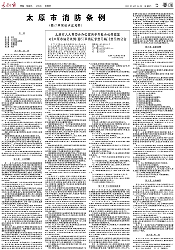 太原市人大常委会办公室关于向社会公开征集对《太原市消防条例(修订草案征求意见稿)》意见的公告