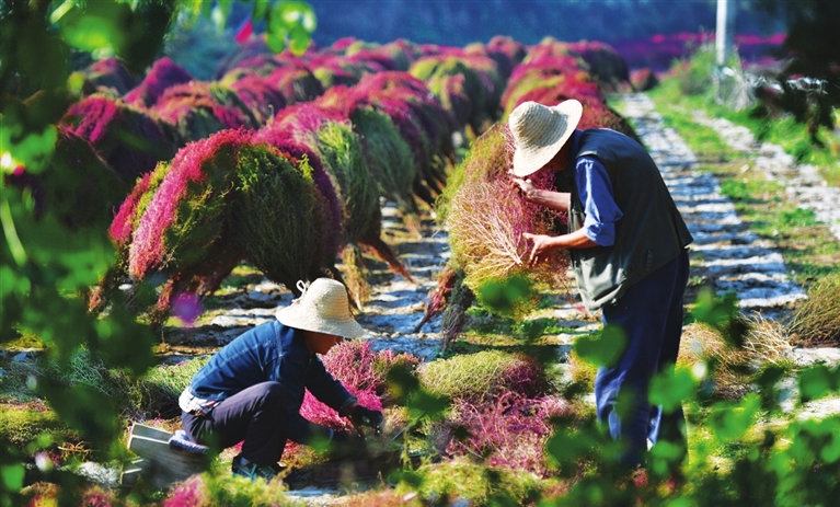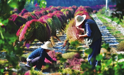 10月5日,阳曲县白家社村村民正忙着收割地肤。金秋时节,我市农村到处都是丰收的喜人景象。韩双喜 摄