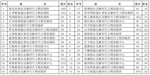 建成区内街道办事处及新时代文明实践所实地检查排名