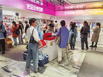 中秋国庆假期正值杭州亚运会举办,亚运特许商品受到追捧。记者在杭州湖滨步行街一家亚运特许商品零售店内看到,不少顾客的购物篮里放满了各种等待结账的商品,收银台前排起长队。店内工作人员说,纪念币、手办、文具等深受大家喜爱,一些货品上架不久就销售一空。
