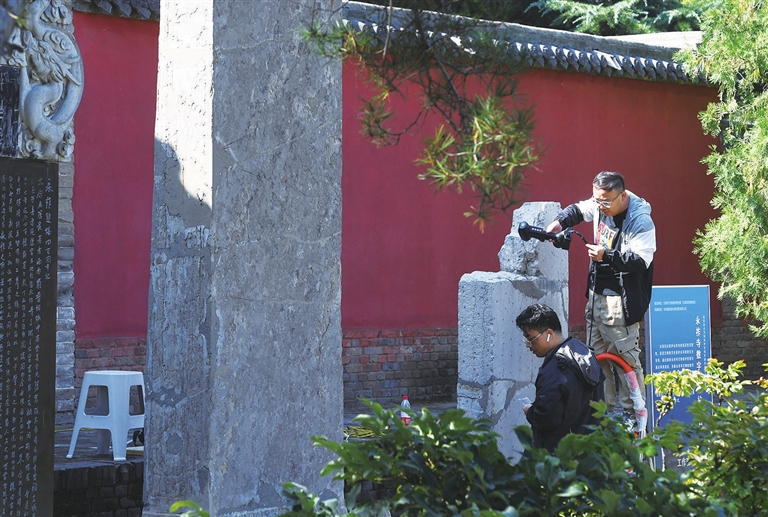 10月9日,永祚寺工作人员对寺内碑刻进行信息采集。永祚寺数字化保护项目旨在对寺内建筑及附属文物进行数字化信息采集,建立相关档案,实现永续保护。牛利敏 摄