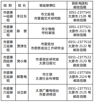 十二届太原市委第六轮巡察进驻情况一览表