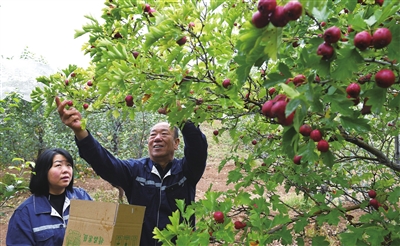 10月16日,游客在尖草坪区庄头村摘红果、赏美景。庄头村充分利用周边自然和旅游资源,发展旅游业和种植业,助力乡村振兴。牛利敏 摄