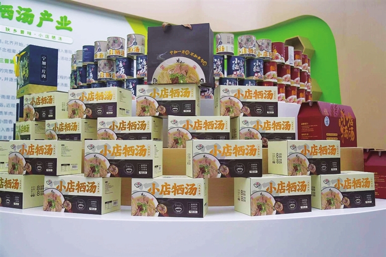 笔者看到,经过先进的技术处理,烹饪好的“小店牺汤”被装入罐中,脱水蔬菜包、酿造食醋包、粉条包等被装进密封袋里,开包加热即食。未来,“小店牺汤”将系列化发展,计划再培育开发3款本地品牌,充实风味队伍,为消费者提供更多选择。