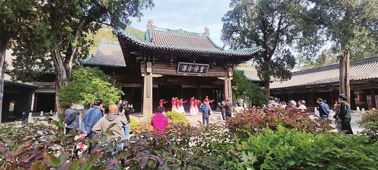 2023崛围红叶节期间,崛围山博物馆工作人员赶排了原创舞蹈——“崛围红叶正当时”为游客献演,以此更好地弘扬晋阳文化,讲好太原故事。宿晓健 摄