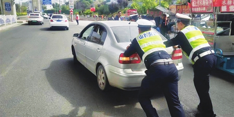 车辆抛锚停路中 民警推车暖人心
