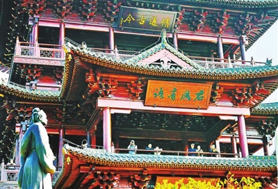 ②游客在太原市雁丘园好问楼上观赏汾河景色。新建成的太原汾河景区四期雁丘园,是展现太原城市形象的文旅新名片。