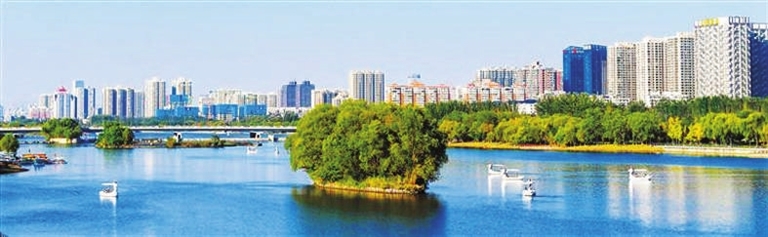 ⑧太原汾河通达桥至晋阳桥段水域长约2.5公里,水质达到Ⅲ类水以上标准。水清天蓝,美景如画。