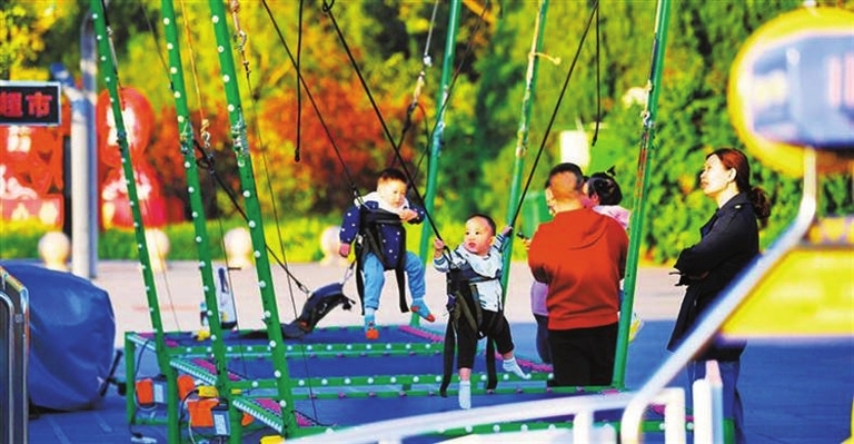 ⑦太原市跻汾桥附近的儿童乐园,儿童在家长的看护下玩耍。