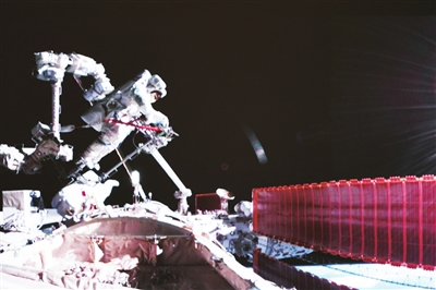 清晨,东风着陆场上的搜救队伍早已准备就绪,随时准备出发。就在大家安静守候的过程中,一轮红日从东边的地平线喷薄而出,映红了半边天。西北回望,一轮凸月正缓缓落下。还没来得及仔细欣赏这日月同辉的景致,只听嘭的一声巨响从高空传来。