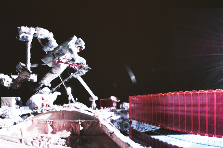 出舱的时刻到了:景海鹏、朱杨柱、桂海潮3名航天员依次出舱。他们向大家挥手致意,掌声、快门声和“欢迎回家”的欢呼声响成一片。