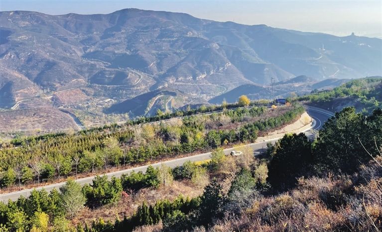 一路美景令人沉醉,从太古路至店头村左拐上山。山势时而陡峭、时而舒缓,几个急转弯后,眼前的枫林染红了山坳,令人惊艳。旅游公路上,骑车出游的市民不时驻足停留,用手机定格绚烂的秋景。杜牧诗中“停车坐爱枫林晚”的形容恰如其分,眼前美景也正应了爱晚城郊森林公园之名。