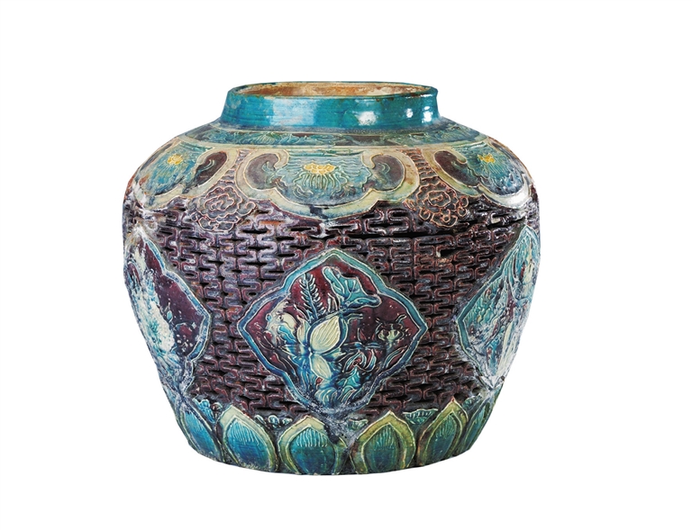 元明清时期,山西地区生产的珐华器多为小件器物,而太原市博物馆馆藏的这件明珐华开光镂空陶罐,腹径和高都达30厘米有余,造型古朴,色泽典雅,体量之大在现存众多珐华器中独树一帜,是山西珐华器的代表器物,为研究山西明代珐华烧造提供了不可多得的资料,也是山西窑口发展兴盛的印证。
