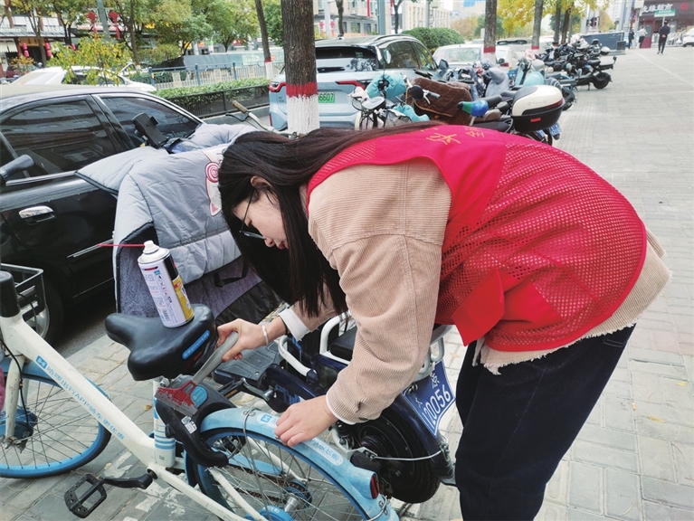 长风社区组织工作人员和志愿者近日开展志愿服务活动。活动中,大家集中清理街巷空调外挂机、电线杆、共享单车车身等地的“牛皮癣”,整治乱停乱放非机动车,进一步改善了辖区环境卫生,提高了居民环保意识。