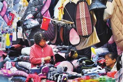 随着气温降低,御寒用品开始走俏。11月13日,市民正在省城朝阳街小商品批发市场挑选手套。邓寅明 摄