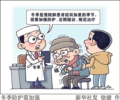专家提醒,慢阻肺患者在冬季的症状容易加重,需要定期到医院进行门诊随访,进行肺功能检查,坚持规范治疗。慢阻肺患者在冬季可以及时接种流感疫苗和肺炎链球菌疫苗,预防呼吸道感染性疾病,降低病情加重的风险。