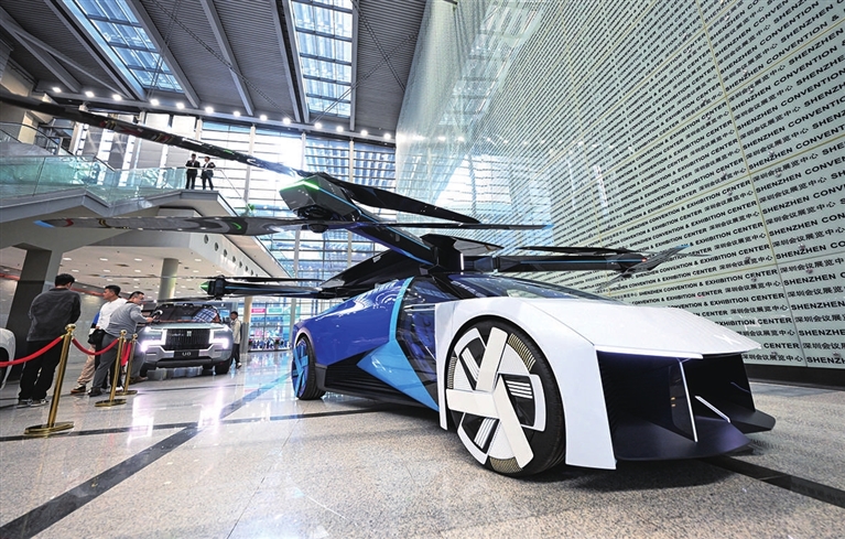 11月15日,在第二十五届高交会上,机臂、旋翼等飞行系统可以完全折叠收纳的小鹏汇天陆空一体式飞行汽车对公众展出。当日,第二十五届中国国际高新技术成果交易会在深圳开幕。105个国家和地区团组、4925家企业参会参展,展会总面积达到50万平方米,是史上规模最大、参与国家和地区最多的一届高交会。新华社记者 毛思倩 摄