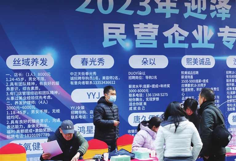11月19日,2023年迎泽区零工市场民营企业专场招聘会在中正天街广场举行,30余家用人单位提供了100余个岗位,吸引求职者前来咨询。张昊宇 摄