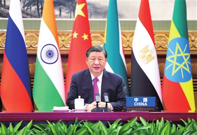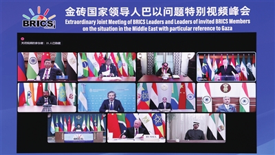 习近平强调,金砖合作机制是新兴市场国家和发展中国家加强团结合作、维护共同利益的重要平台。今天,我们就巴以问题协调立场、采取行动,为扩员后的“大金砖合作”开了个好头。中方愿同其他成员一道,开创金砖合作新时代。
