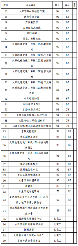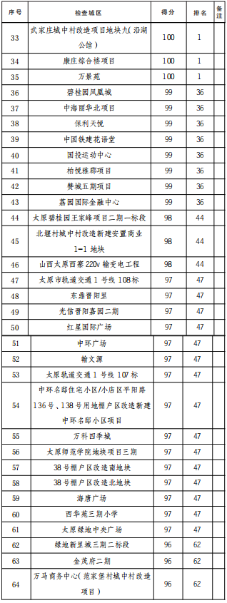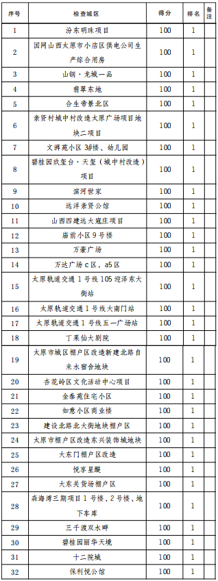 现将检查排名进行通报,请各城区、各相关单位对照结果认真整改,建立常态长效措施,督促各责任单位尽快完成整改落实。