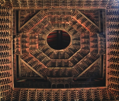 窦大夫祠内八卦藻井,斗拱排列疏朗有序,结构简练而严谨,造型精巧而华美,是元代木作不可多得的精品。