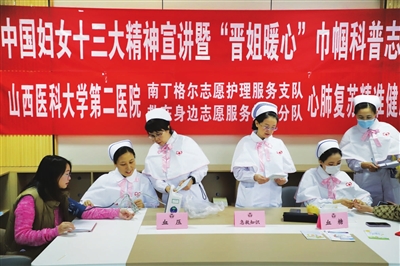 12月4日,迎泽区老军营街道联合驻地单位开展志愿者服务活动,庆祝第38个国际志愿者日。志愿者们为市民义诊、普及法律常识,鼓励更多市民参与志愿服务。张昊宇 王娟娟 摄