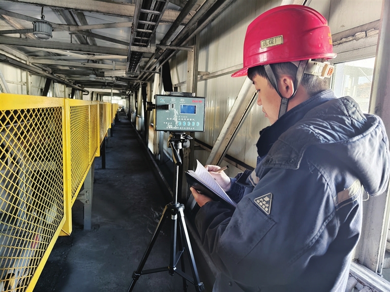 12月5日,中煤建安集团七处小回沟选煤厂的工作人员正在对生产区域进行噪音监测。该厂加强职业健康危害源监测和对除尘、降噪设备的投入,全面保障职工身体健康。王韵菲 薛 锦 摄