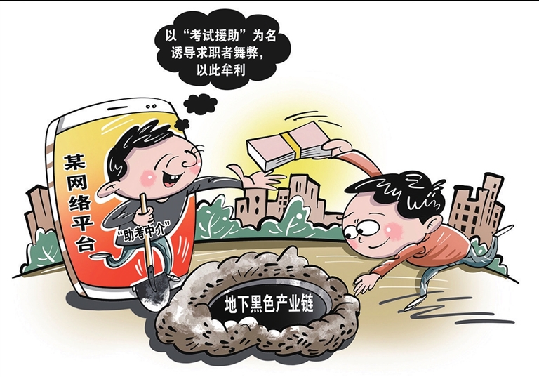 近年来,许多入职笔试由线下改为线上,在灵活、便捷的同时,也给作弊者造成可乘之机。记者调查发现,在一些网络平台,“助考中介”诱导求职者“花钱走捷径”的情况屡见不鲜。