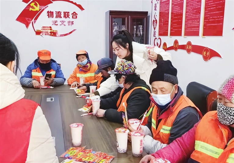 “趁热喝,小心烫。”“天气降温,注意保暖”……活动中,社区工作人员和志愿者,为前来休息的环卫工和快递员冲泡红枣银耳茶,发放暖宝宝和发热鞋垫。一杯杯热茶、一句句暖心话,让大家感受到来自社区的关怀和温暖。