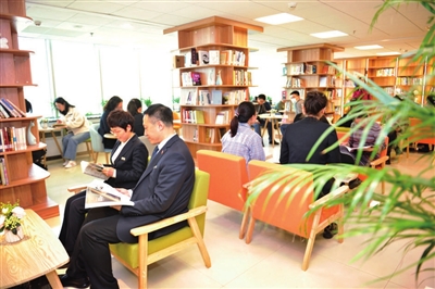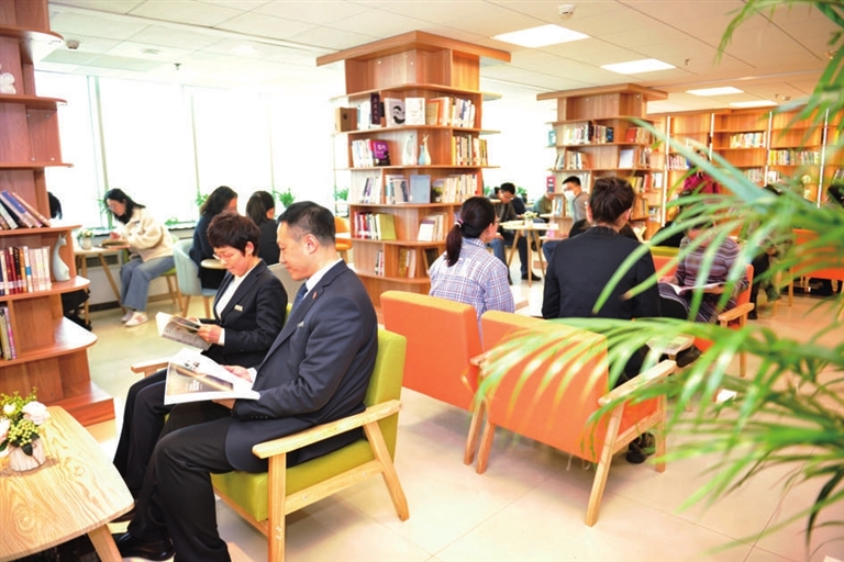 职工书屋给广大职工增添了很多愉悦和欣喜。近日,很多职工发现,室外寒风瑟瑟,窗边的铁海棠却开出一朵朵玫红色的小花。闲暇时间,职工书屋是高小懿常去的地方,“从大量的书籍中选一本,在窗边随意选一处座位,给自己一段阅读时间,非常惬意”,她说,通过读书会活动,自己结识了一些志同道合的小伙伴,大家互相分享阅读心得、交流工作经验,视野开阔了、工作思路多了,“这里是职工书屋,也是大家成长的空间”。
