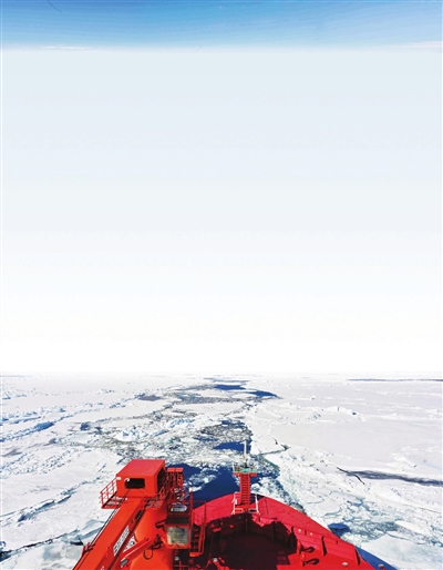 开道、平整、拓宽……“雪龙2”号如犁地般来回穿梭,在乱冰林立的海面开垦出一条顺滑水道。
