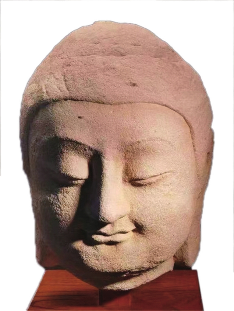 直抵博物馆,他在玻璃罩中看见回归的佛首,眯着眼睛,笑迎众生,那迷人的微笑,横贯千年,魅力四射,一下击穿了他的情感之穴。他只想一步步靠近,尽管造像躯首分离百载,没有了佛躯、佛足、佛手,那笑容仍像蓝天一样纯净,那一刻,他怆然泪崩,如弦,如雨……