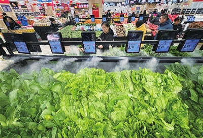 12月17日,省城府东街一家超市内生活物资充足,市民在选购蔬菜。寒潮来袭,记者在我市各市场走访看到,蔬菜、肉蛋等生活必需品供应充足,价格平稳。邓寅明 摄