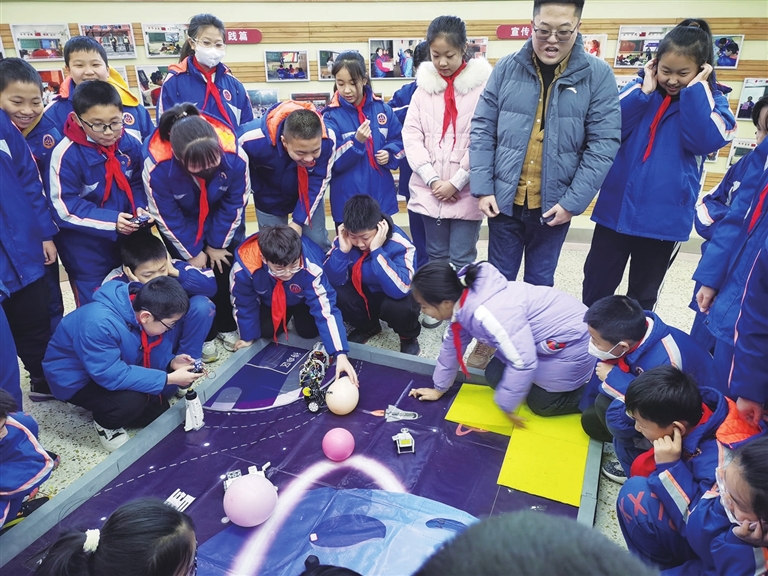 活动现场,志愿者为学生们进行了视力健康科普课程的教学,让学生了解眼睛,掌握爱眼护眼知识。在科学表演秀中,科技工作者们为师生们带来了能够进行流体力学、液氨实验、旋转飞轮等操作的科学仪器。学生们在志愿者的引导下,通过观察、动手、实验,积极参与到科学探索的过程中,亲眼目睹和体验神奇的声光电磁等科学现象。最后,学生们还与机器人进行了零距离接触。