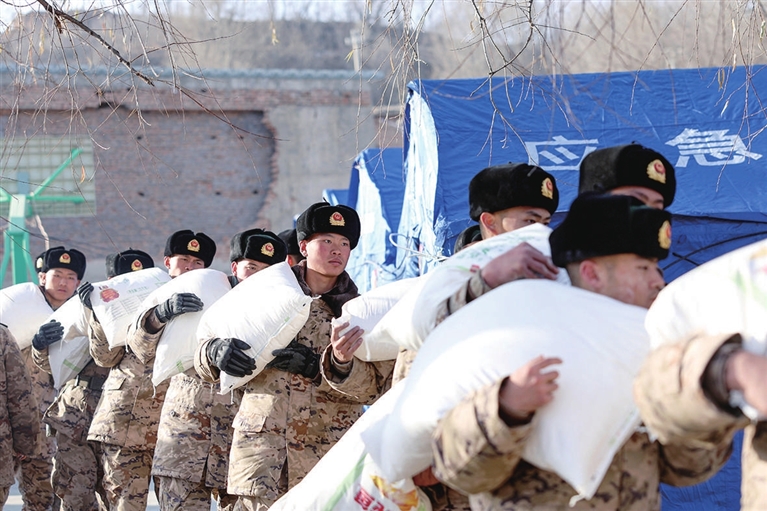 柳沟乡张郭家村村支书董尕军正在与村民一起装运火炉。“19日23时至20日6时,村里连夜搭起了26顶帐篷,但是没有取暖的火炉。”董尕军说,这次拉了25个火炉,晚上村里安置点取暖就有保障了。