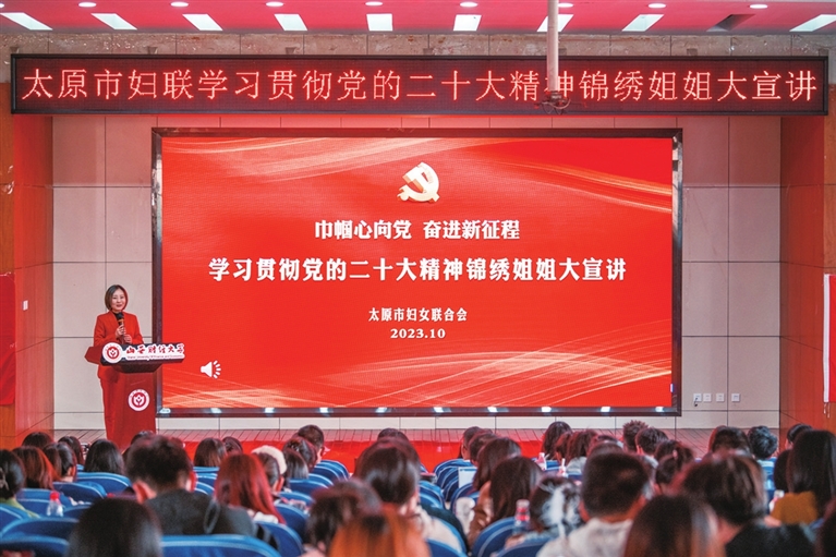 用榜样力量激励前行,全市各级妇联选树全国、 省级“三八红旗”系列先进个人74名、先进集体49 个,命名市级“巾帼建功标兵”531名、“巾帼文明岗”484个,开展送奖到基层,增强“她”的荣誉感;举办首届太原市最美巾帼奋斗者发布会和“我奋斗·家国美”“踔厉奋发巾帼志 笃行不怠向未来”等先进典型宣讲,传递榜样力量。